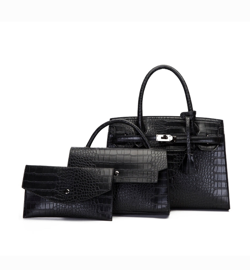 • 3-IN-1 Crocodile Pattern Satchel, Cross-body Set & Clutch